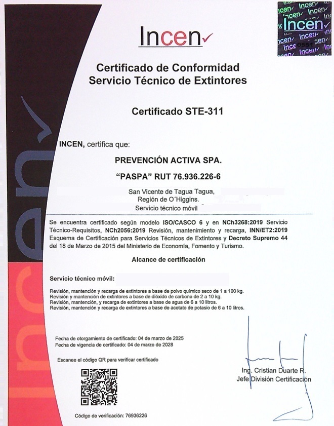 Verificación completa del extintor. Su propósito es dar la máxima seguridad que el extintor funcionará en forma efectiva y segura